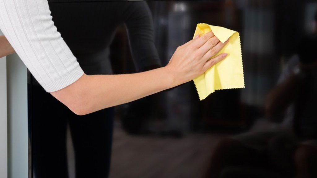 Čistenie televízora jemnou mikrovláknovou handričkou bez poškodenia obrazovky